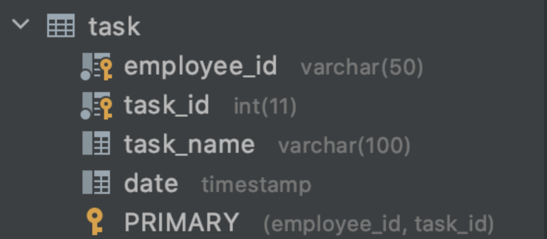 아래와 같이 테이블의 키가 둘 이상의 컬럼으로 구성되어 있는 복합 키일 경우 매핑하는 방법에 대해 알아보자. JPA에서는 복합 키를 지원하기 위해 @IdClass와 @EmbeddedId를 제공한다. 여기서는 @EmbeddedId를 이용해서 복합 키를 매핑하는 방법에 대해 알아보자. 아래 내용은 김영한님의 책 자바 ORM 표준 JPA 프로그래밍에서 나온 내용 중의 일부분이다. JPA 복합 키를 사용하려면 별도의 식별자 클래스를 만들어야 한다. @EmbeddedId 를 적용한 식별자 클래스는 다음 조건을 만족해야 한다. @EmbeddedId 어노테이션을 붙여줘야 한다. Serializable 인터페이스를 구현해야 한다. 기본 생성자가 있어야 한다. 식별자 클래스는 public 이어야 한다. 위 조건을 만족하..